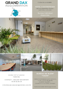 L’hôtel d’entreprises du Grand Dax, situé sur le pôle économique de Saint-Paul-lès-Dax, propose une offre immobilière attractive pour les entreprises qui souhaitent travailler dans un environnement professionnel motivant.